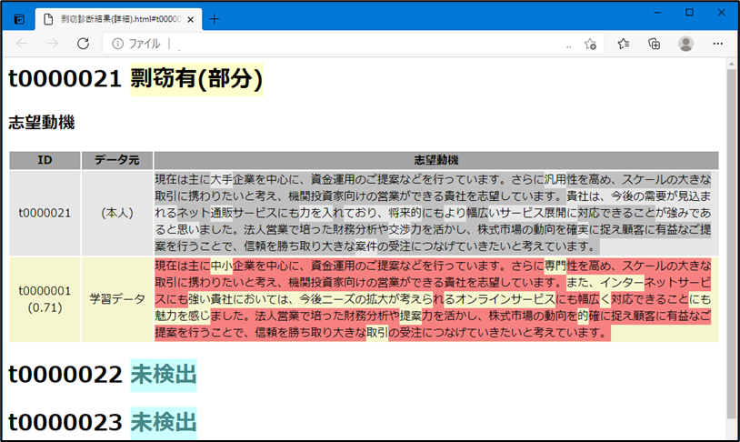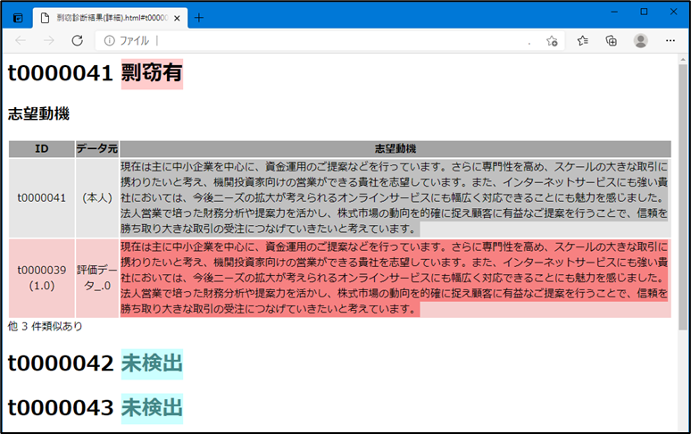 剽窃診断結果(詳細).htmlは、以下の2種類です。